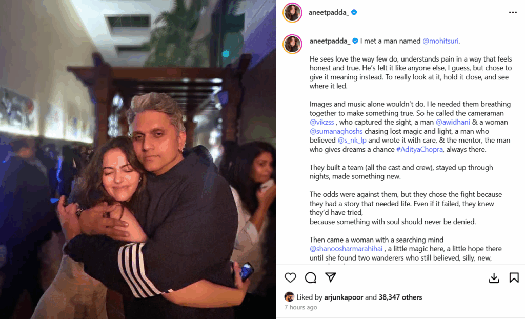 अनीत के लिए सैयारा बहुत बड़ा ब्रेक है। इस फिल्म की सफलता उनके लिए बॉलीवुड के दरवाजे खोल देगी। अनीत ने अपने जज्बात एक सोशल मीडिया पोस्ट में लिखे हैं, जिसमें उन्होंने निर्देशक मोहित सूरी और निर्माता आदित्य चोपड़ा का शुक्रिया अदा किया है।