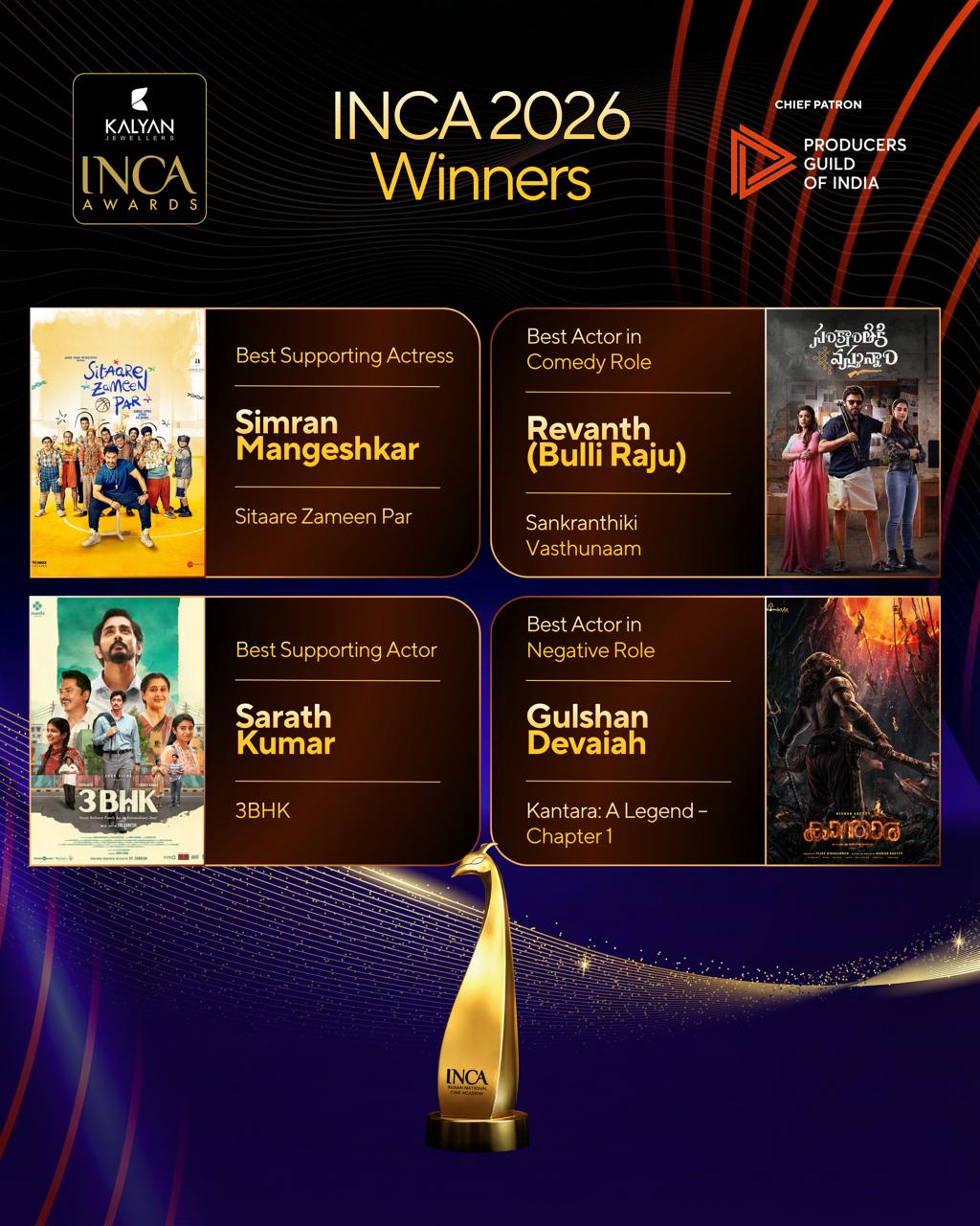 इंका अवॉर्ड्स की चार प्रमुख कैटेगरीज (बेस्ट एक्टर, बेस्ट एक्ट्रेस, बेस्ट डायरेक्टर और बेस्ट फिल्म) में 12 भाषाओं के विजेताओं की लिस्ट इस प्रकार है: