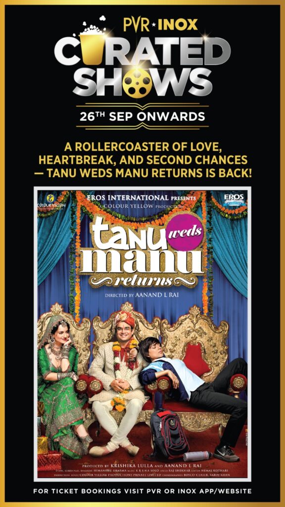 ओरिजिनल रिलीज के 10 साल बाद पीवीआर आइनॉक्स तनु वेड्स मनु रिटर्न्स को एक बार फिर सिनेमाघरों में लेकर आ रहा है। पीवीआर की ओर से साझा की गई जानकारी के अनुसार, फिल्म 26 सितम्बर को सिनेमाघरों में लौटेगी।