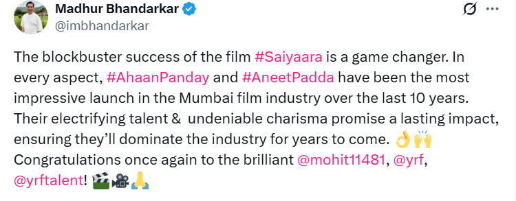 मधुर इससे पहले भी सैयारा की सफलता की तारीफ कर चुके हैं।