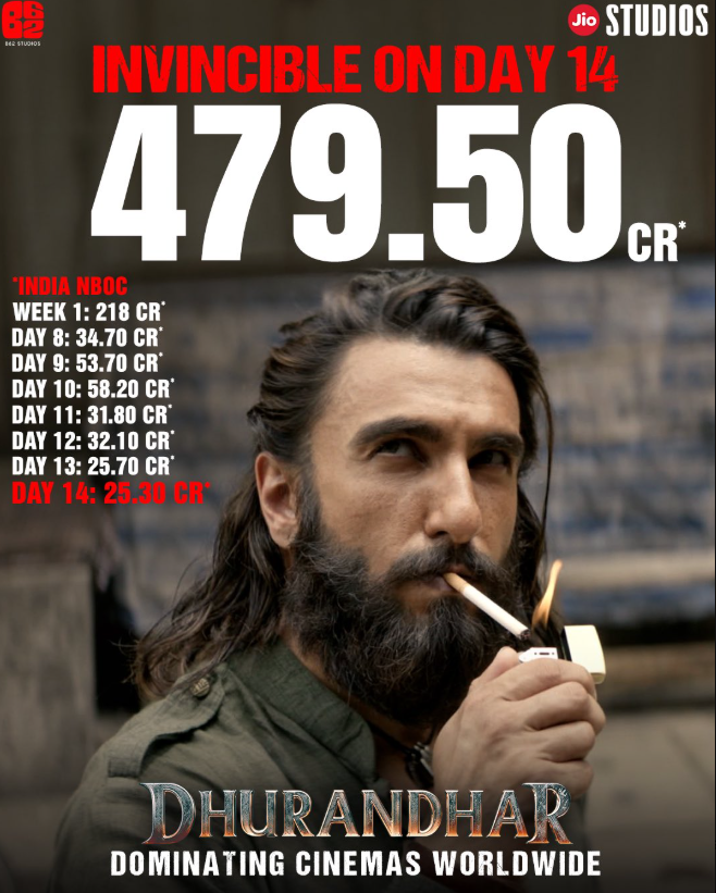 फिलहाल, इसी कलेक्शन के आधार पर धुरंधर की कमाई का आंकलन करें तो फिल्म रिलीज के दो हफ्तों यानी 14 दिनों में 477.20 करोड़ नेट कलेक्शन घरेलू बॉक्स ऑफिस पर कर चुकी है। 500 करोड़ का पड़ाव अब बस लगभग 22.80 करोड़ ही दूर है, जो कल यानी तीसरे शुक्रवार को मिलने की पूरी उम्मीद है।