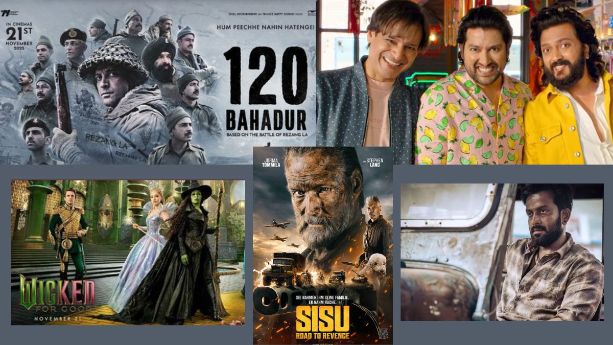 इनमें फरहान अख्तर की 120 बहादुर, विवेक ओबेरॉय-रितेश देशमुख-आफताब शिवदसानी की मस्ती 4 और हाई-ऑक्टेन एक्शन ड्रामा सिसु: रोड टू रिवेंज शामिल हैं। चलिए, शुक्रवार को सिनेमाघरों में रिलीज हो रही फिल्मों की पूरी लिस्ट आपको बताते हैं।