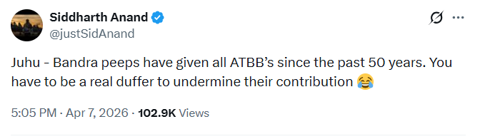 मंगलवार को वॉर और पठान जैसी सफल फिल्में बनाने वाले सिद्धार्थ आनंद ने एक्स पर लिखा- जुहू-बांद्रा के लोगों ने पिछले 50 सालों से कई ऑल टाइम ब्लॉक बस्टर फिल्में दी हैं। आप वाकई में डफर होंगे, जो उनका योगदान कम करके आंकेंगे।