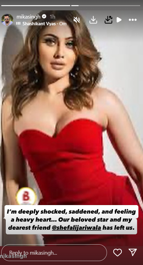 सिंगर मिका सिंह ने इंस्टाग्राम स्टोरी में लिखा- मुझे बहुत शॉक लगा है और बेहद दुखी हूं। मेरा दिल भारी हो गया। हमारी प्यारी स्टार और मेरी अच्छी दोस्त हमें छोड़कर चली गई।