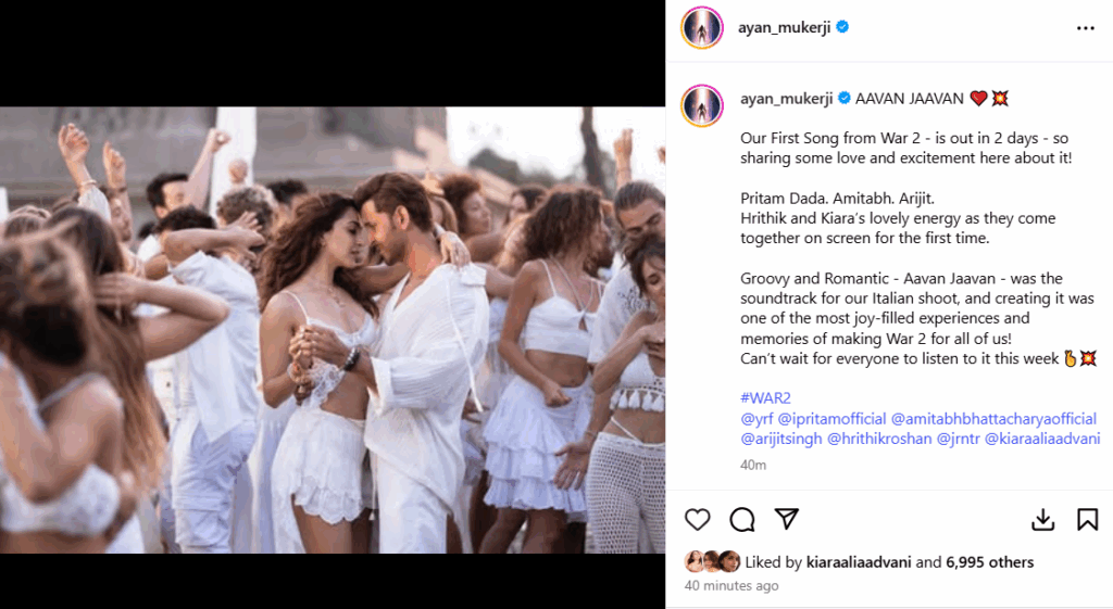 निर्देशक अयान मुखर्जी की पोस्ट के मुताबिक, गाने का टाइटल आवन जावन है। इसे इटली में शूट किया गया है। गाना दो दिनों में रिलीज किया जाएगा।