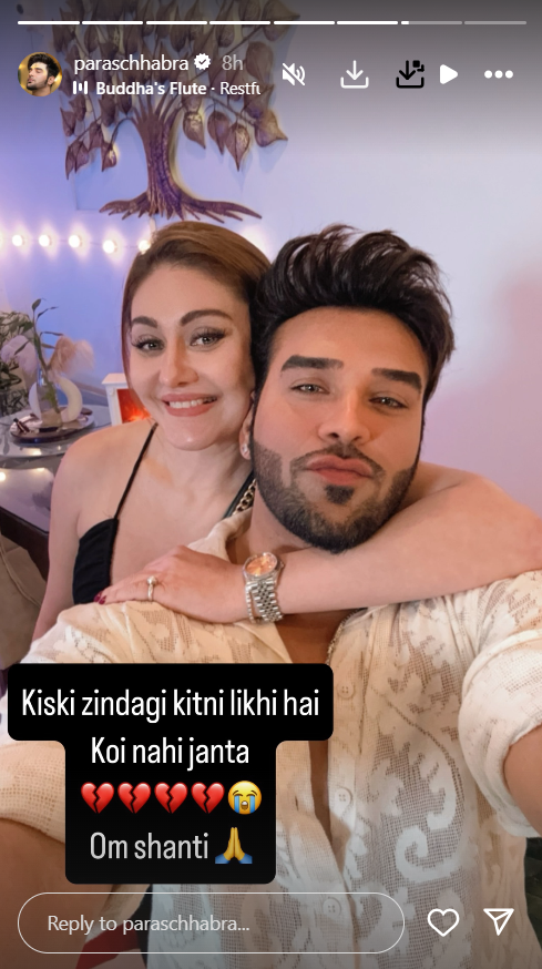 पारस ने शेफाली संग अपनी एक दोस्ताना तस्वीर शेयर करके लिखा- किसकी जिंदगी कितनी लिखी है, कोई नहीं जानता। ओम शांति।