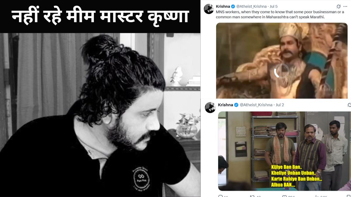 मुंबई। Atheist Krishna Death: मीम्स और फोटोशॉप कला के माहिर कृष्णा का आकस्मिक निधन 23 जुलाई को हो गया। एक्स पर एथीस्ट कृष्णा के नाम से उनका एकाउंट है, जिस पर कृष्णा की आखिरी पोस्ट 8 जुलाई की है। हैदराबाद के फोटोशॉप आर्टिस्ट का असली नाम राधाकृष्ण पांगा था।